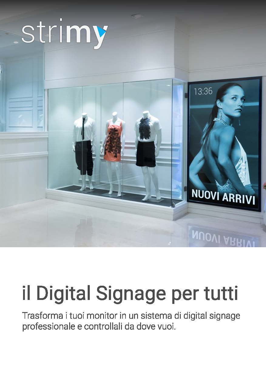 Strimy è un servizio di Digital Signage estremamente versatile, ideale per la comunicazione visiva e l'advertising multimediale di forte impatto emotivo!